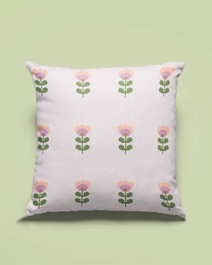 Brodera en stilren kudde med blommor i raka rader. Broderas med moulinégarn i räknade korsstygn på vit aidaväv 4,4 rutor/cm.Detta broderikit passar nybörjaren men även den som är mer broderivan.Kuddens storlek är ca 40x40 cm.