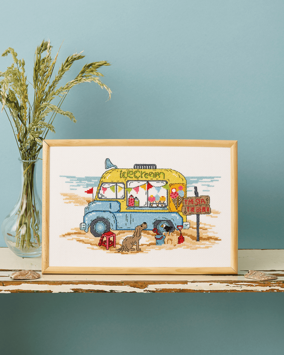 Tavla med Beachtema i Korsstygn
