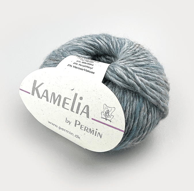 Kamelia från Permin innehåller fin alpacka, silke, akryl och viskos.