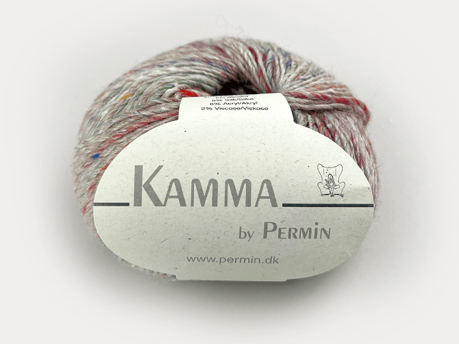 Kamma är ett kapslat stickgarn med vita och svarta bon i.