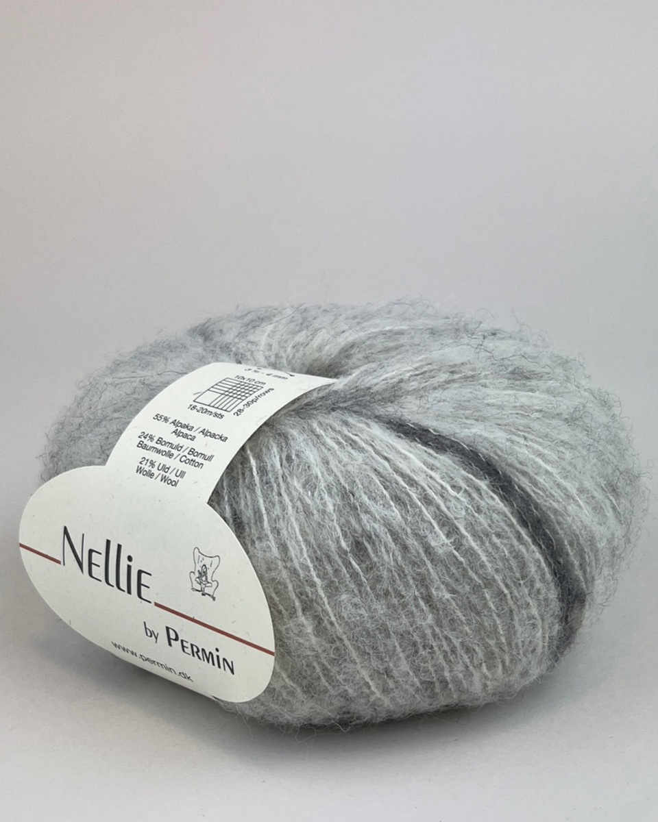 Permin rekommenderar stickor 3½ - 4 mm och 18 – 20 m, men Nellie kan med fördel stickas på stickor 7 mm eller högre för att framhäva den luftiga looken.