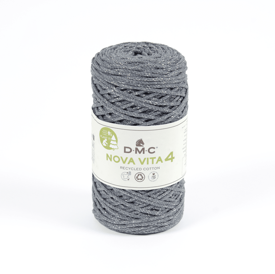 Glittrigt återvunnet bomull- och polyesterförstärkt miljövänligt garn för virkning, stickning och makramé.