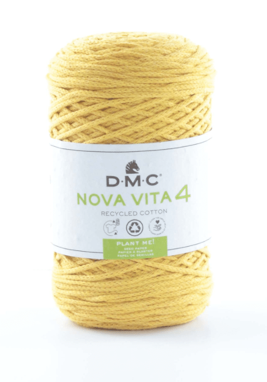 Återvunnet bomull- och polyesterförstärkt miljövänligt garn för virkning, stickning och makramé.