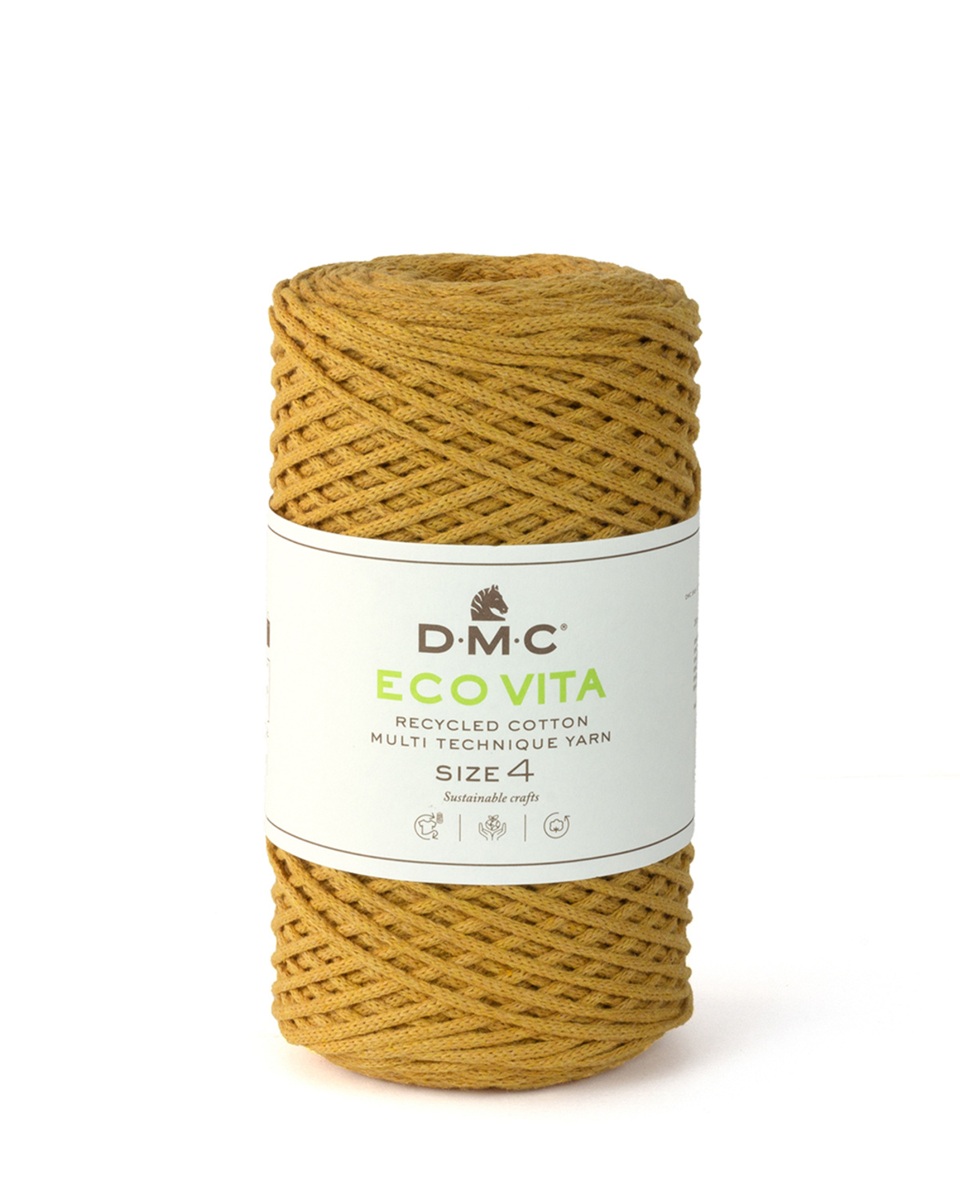Återvunnet bomull- och polyesterförstärkt miljövänligt garn för virkning, stickning och makramé.