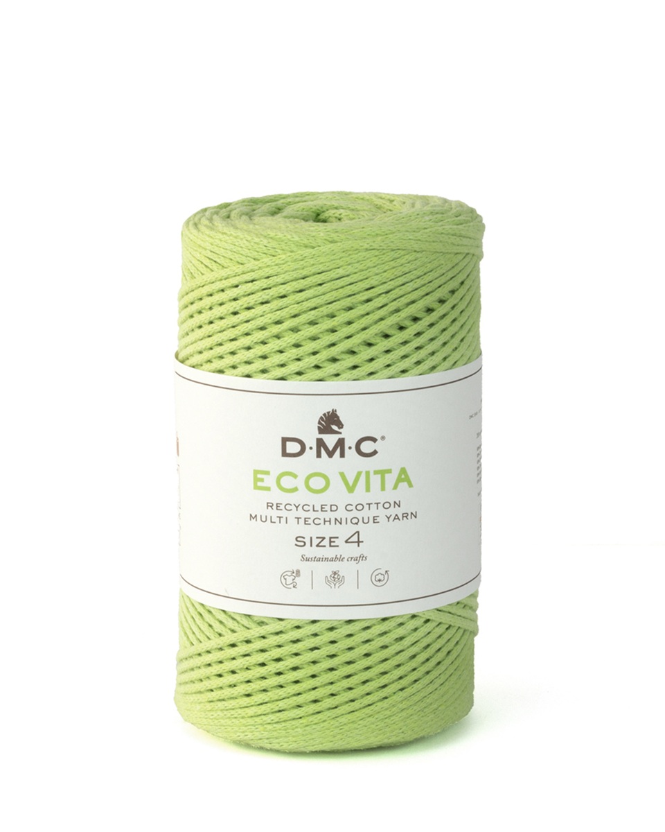 Vikt/Längd: 250g, 200mMaterial: 80% återvunnen bomull, 20% polyesterStickor: 5mmVirknål: 4mmStickfasthet: 14mTvättråd: