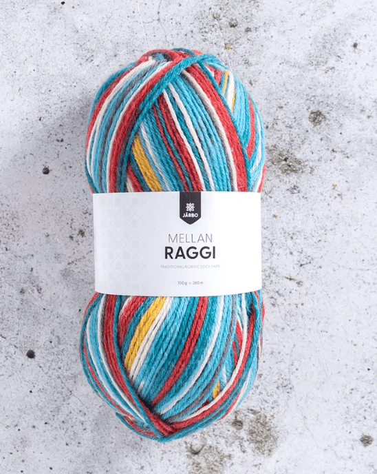 Mellanraggi från Järbo är ett omtyckt sockgarn som är lite tunnare än Raggi.Detta sköna sockgarn består av superwashbehandlad ull och och polyamid i en härligt, slitstark blandning.Garnet finns i många vackra färger, och det passar lika bra till sockor som till halsdukar, mössor, vantar och tröjor.Oeko-Tex® certified
