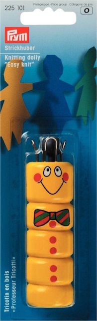 Stickdocka med medföljande plastpinne.Med denna stickdocka kan stickade snoddar enkelt skapas.Stickdockan är enkel att använda, även för barn.