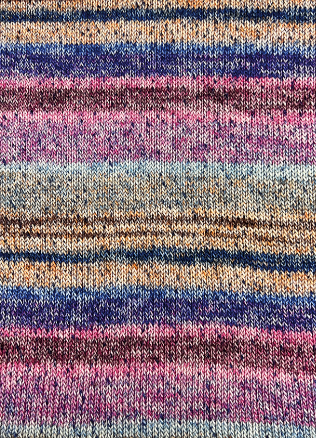 Rigmor by Permin är ett färgskiftande ullgarn för stickning och virkning.Ett mjukt garn som är superwash behandlat.Garnet är randigt i färger som är printade. Ränderna är olika långa.Passar bra till plagg för vuxna och små.Den fina ullen passar bra till tröjor, koftor, västar och ponchos