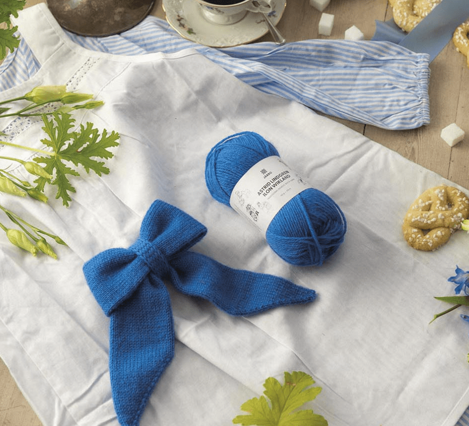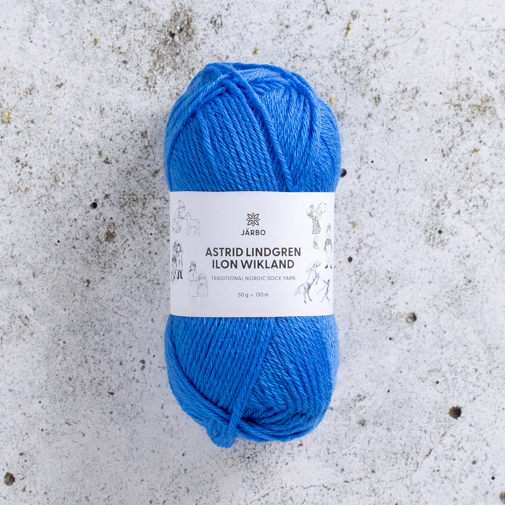 Järbos enfärgade garn Astrid Lindgren/Ilon Wikland. Det är ett extra mjukt sockgarn, tack vare tunnare fibrer, som går lika bra att använda till tröjor och andra accessoarer som till sockor.