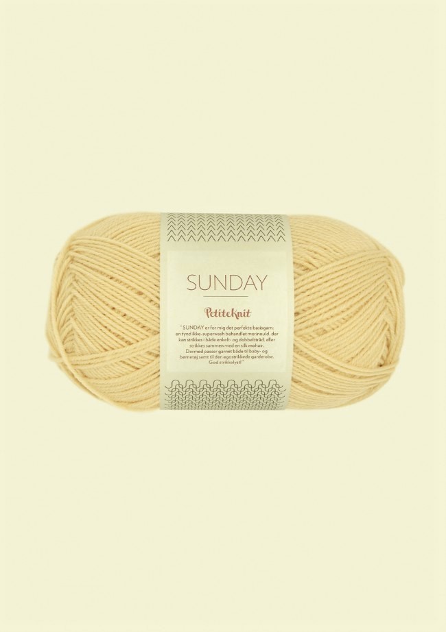 SUNDAY PetiteKnit från Sandnes Garn av 100% merinoull.Samma garn som Sunday men med PetiteKnits egna färger, det går utmärkt att blanda färgerna. Ett tunt icke-superwash behandlat garn som kan stickas ensam eller med dubbel tråd.Eller stickas tillsammans med Tynn Silk Mohair.Ett perfekt basgarn som passar till baby, barn och vuxen.Merinoullen till detta garn kommer från Uruguay och är mulesing fri.Vikt/Längd: 50g, ca 235mMaterial: 100% merioullStickor: 3Stickfasthet: 28m/10cmTvättråd: