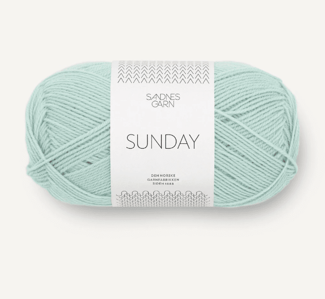SUNDAY från Sandnes Garn av 100% merinoull.Ett tunt icke-superwash behandlat garn som kan stickas ensam eller med dubbel tråd.Eller stickas tillsammans med Tynn Silk Mohair.Ett perfekt basgarn som passar till baby, barn och vuxen.Merinoullen till detta garn kommer från Uruguay och är mulesing fri.