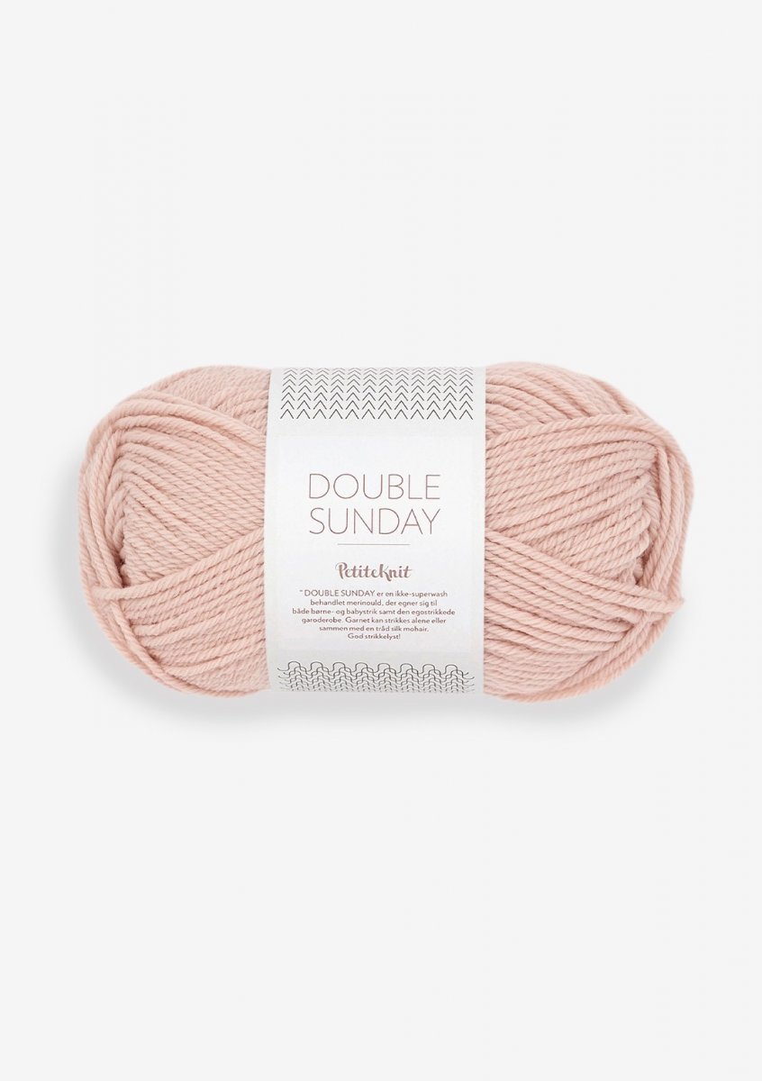 PetiteKnit DOUBLE SUNDAY från Sandnes, innehåller 100% merinoull som inte är superwashbehandlat.Ett perfekt basgarn som passar till både baby, barn och vuxen. Merinoullen kommer från Australien och är garanterat mulesingfri.Vikt/Längd: 50g, 108mMaterial: 100% MerinoullStickor: 3,5-4Stickfasthet: 20-21m/10cmTvättråd: Plagget bör tvättas separat