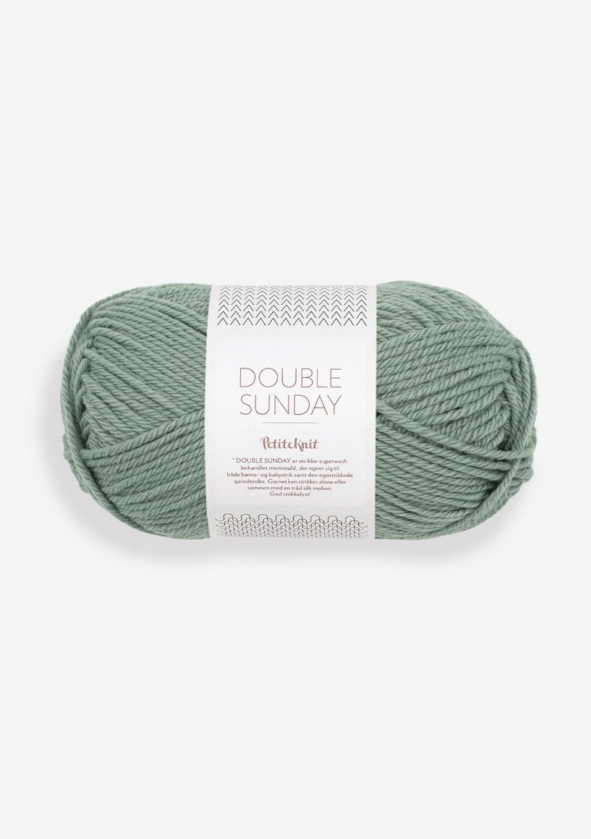 PetiteKnit DOUBLE SUNDAY från Sandnes, innehåller 100% merinoull som inte är superwashbehandlat.
