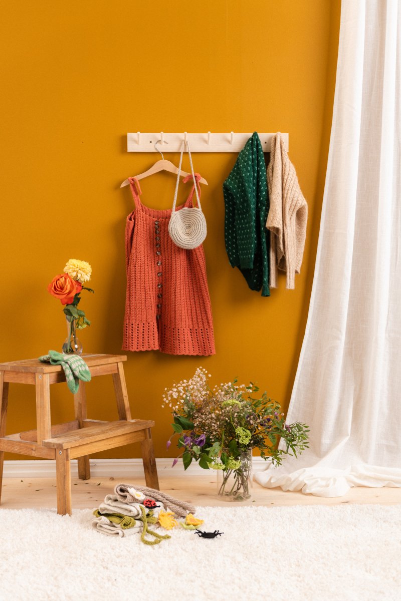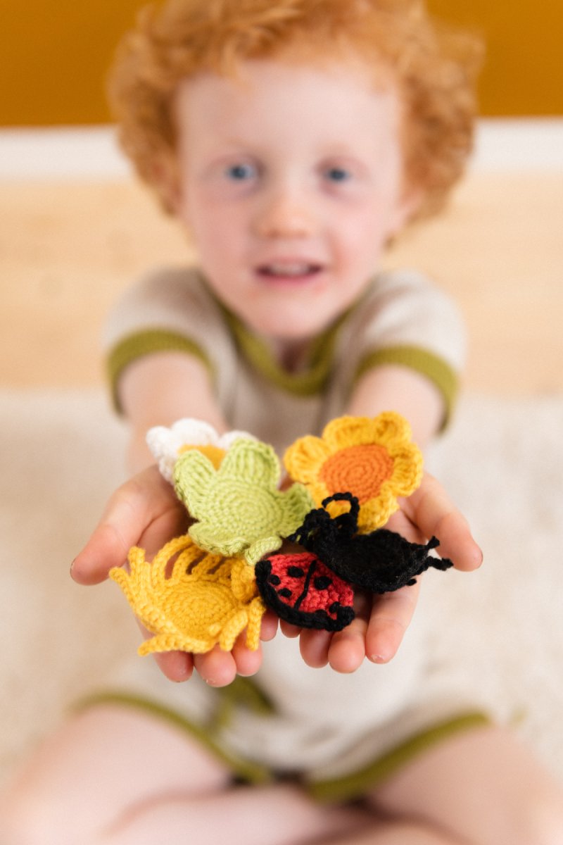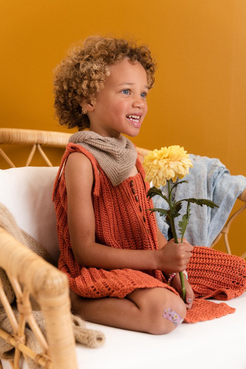 Vårt underbara häfte MINI innehåller basplaggen ditt barn behöver i vår och sommar! Virka en väska att ha skatter och glasspengar i, en klänning att ha över t-shirt eller en solig stranddag eller sticka en mjuk tröja i vårt underbara garn Tencel blow. Våra gulliga patches i Tilda går fint att både pimpa jackan med, men även laga byxans hål efter ett av alla barnens äventyr.
