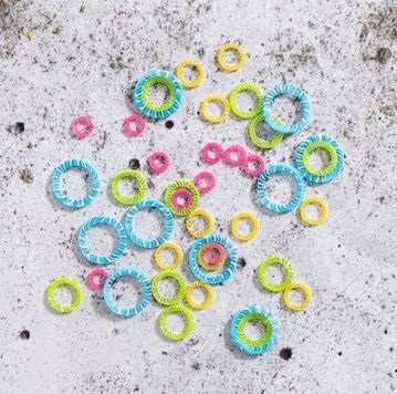 ChiaoGoo Stickmarkörer kommer i ett set med 40 färgglada markörer i olika storlekar (10 stycken av varje storlek).arkörerna är tillverkade av robust plast och varierar i storlek från 5 mm till 15 mm.De är lätta att flytta mellan maskorna och passar till de flesta stickprojekt.